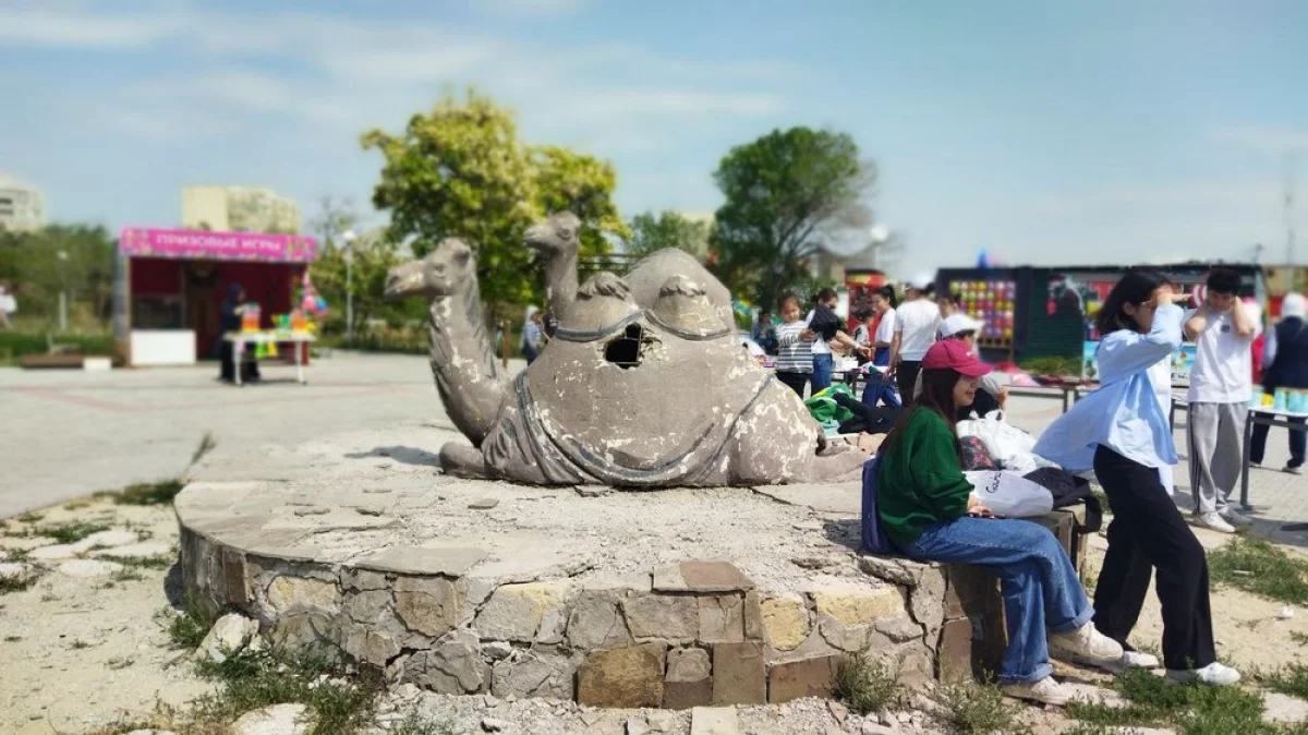 Городской парк «Акбота» не радует глаз горожан. К примеру, монумент явно нуждается в реставрации. Дырка в боку у верблюда видна издалека.
