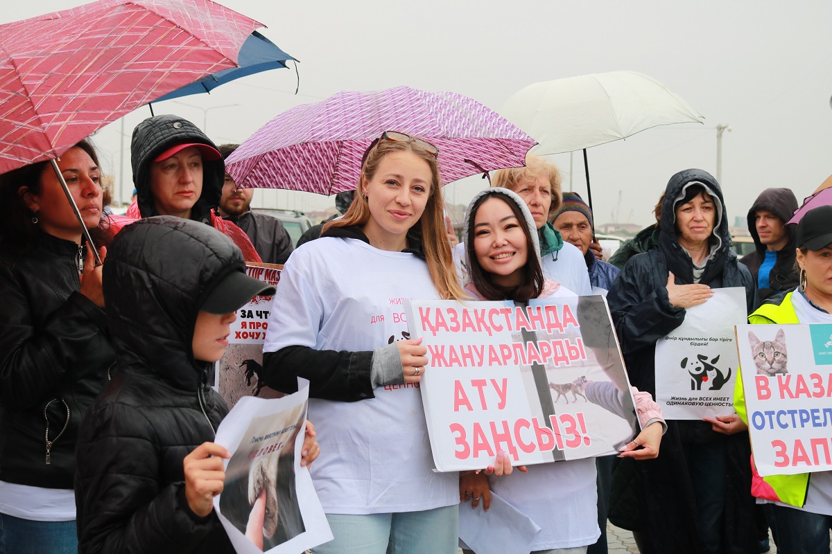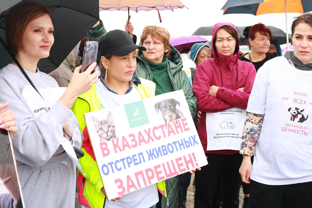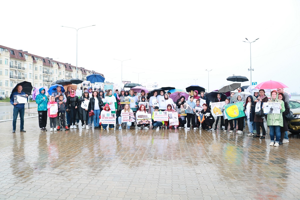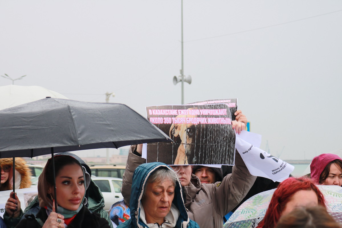 Несмотря на дождливую погоду, первый митинг, который прошёл в Актау в защиту животных, всё же состоялся и собрал около полсотни участников. На нём присутствовали руководители различных общественных объединений по защите животных, а также просто неравнодушные к судьбе четвероногих жители.