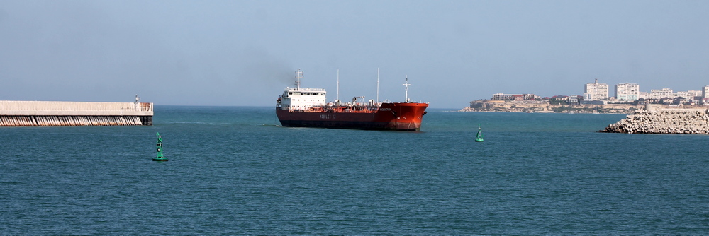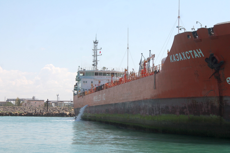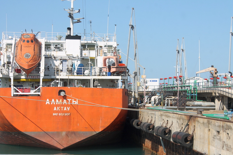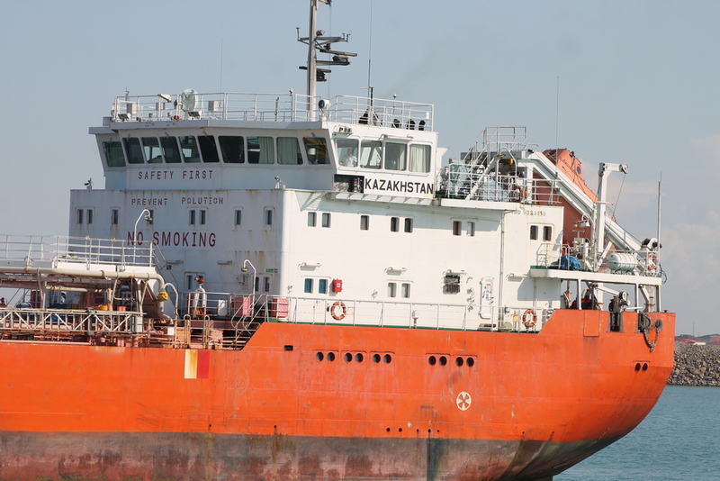 И вот мы видим, как причаливает нефтеналивной танкер «Казахстан».