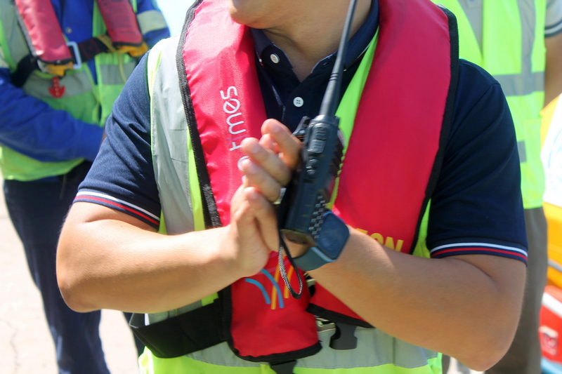 Каждому надели спасательные жилеты. Они, кстати, активируются самостоятельно при попадании в воду.