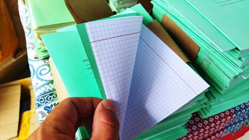 Здесь стоит отметить, что действует акция. При закупке канцтоваров стоимость одной тетради составит 15 тенге. Если же их приобретать поштучно, то будет 30 тенге.