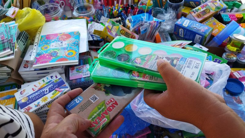 В актауском городском акимате сообщили, что в пяти точках города проходят школьные ярмарки, на которых цены якобы ниже рыночных. В частности, одна из таких точек расположилась на входе в центральный рынок в 23 микрорайоне. Заявлено, что здесь можно приобрести товары по низкой цене. Мы побывали на школьной ярмарке и посмотрели, во сколько родителям школьников обойдется купить ранец и заполнить его нужными принадлежностями.
