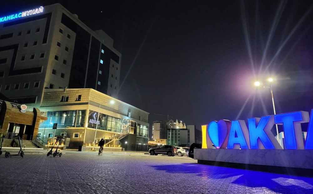 Мы решили начать обход от инсталляции «I love Aktau» вдоль набережной и пройти до парка аттракционов «Сказка» в 5А микрорайоне.