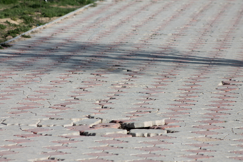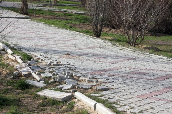 На пути разрушена тротуарная плитка.