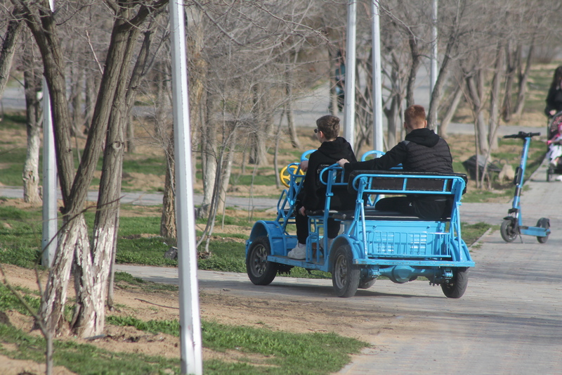 Увы, но все начинается с минусов, которые преследовали всю прогулку по парку. На входе, где высажены деревья, сразу бросаются в глаза следы от покрышек электромобилей багги и электроскутеров.