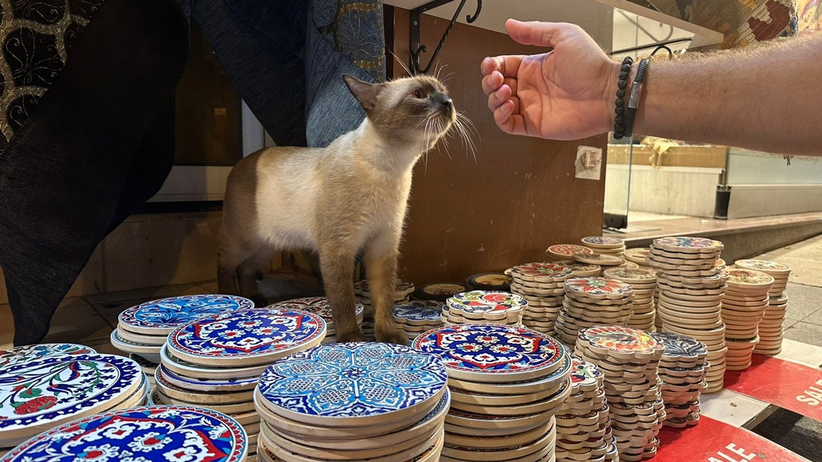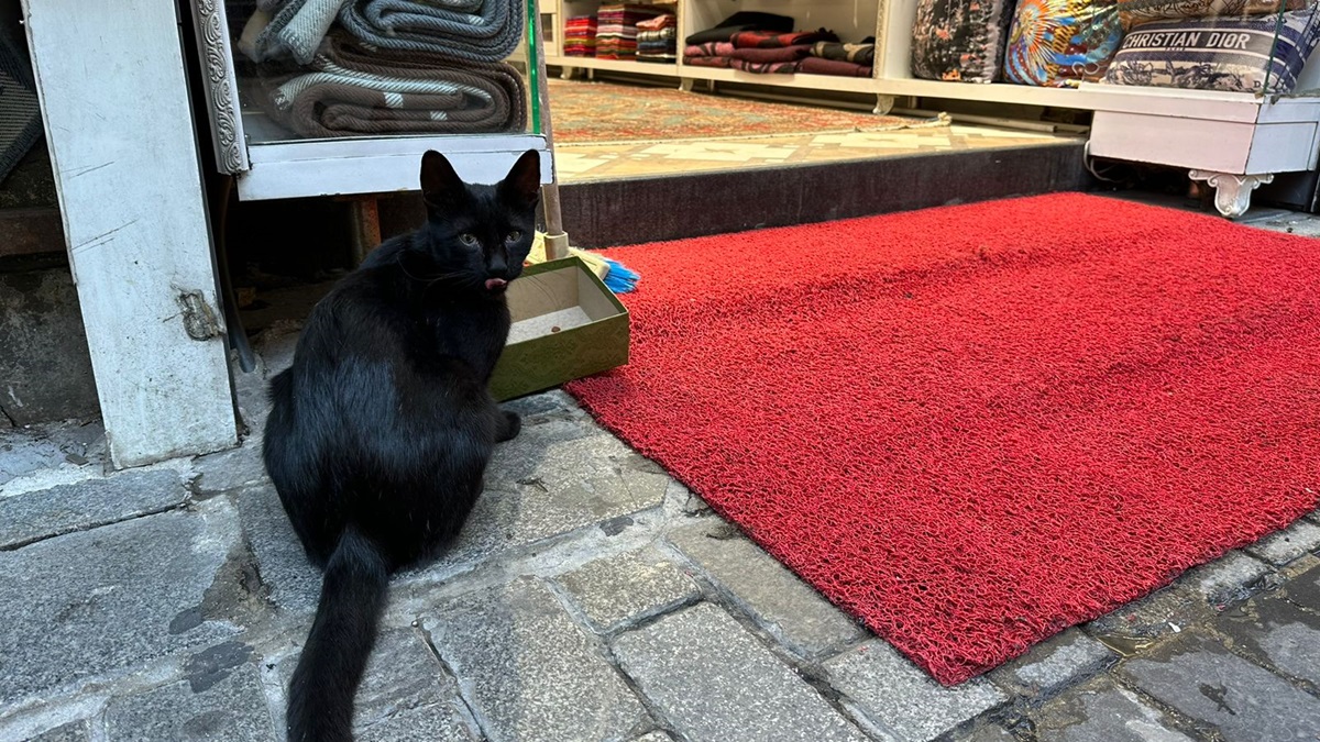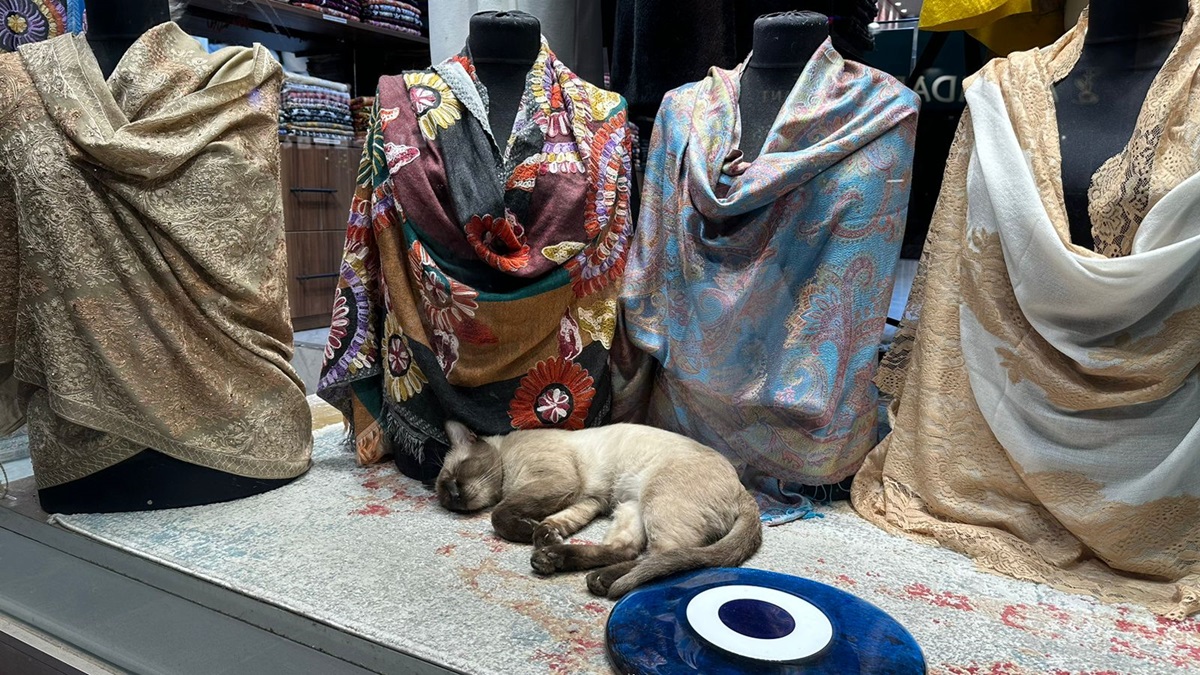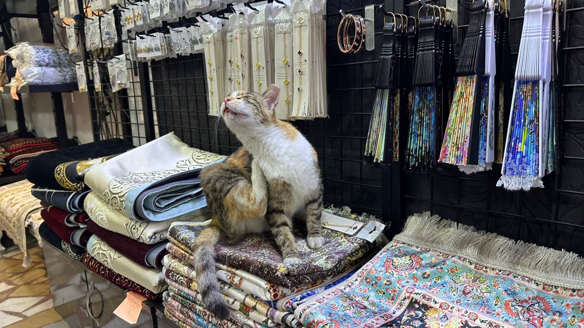 Коты охраняют лавки с тканями, коврами, сувенирами, сладостями и специями, словно понимая важность их товаров. Продавцы часто оставляют миски с едой и водой, делая котов своими верными партнерами.