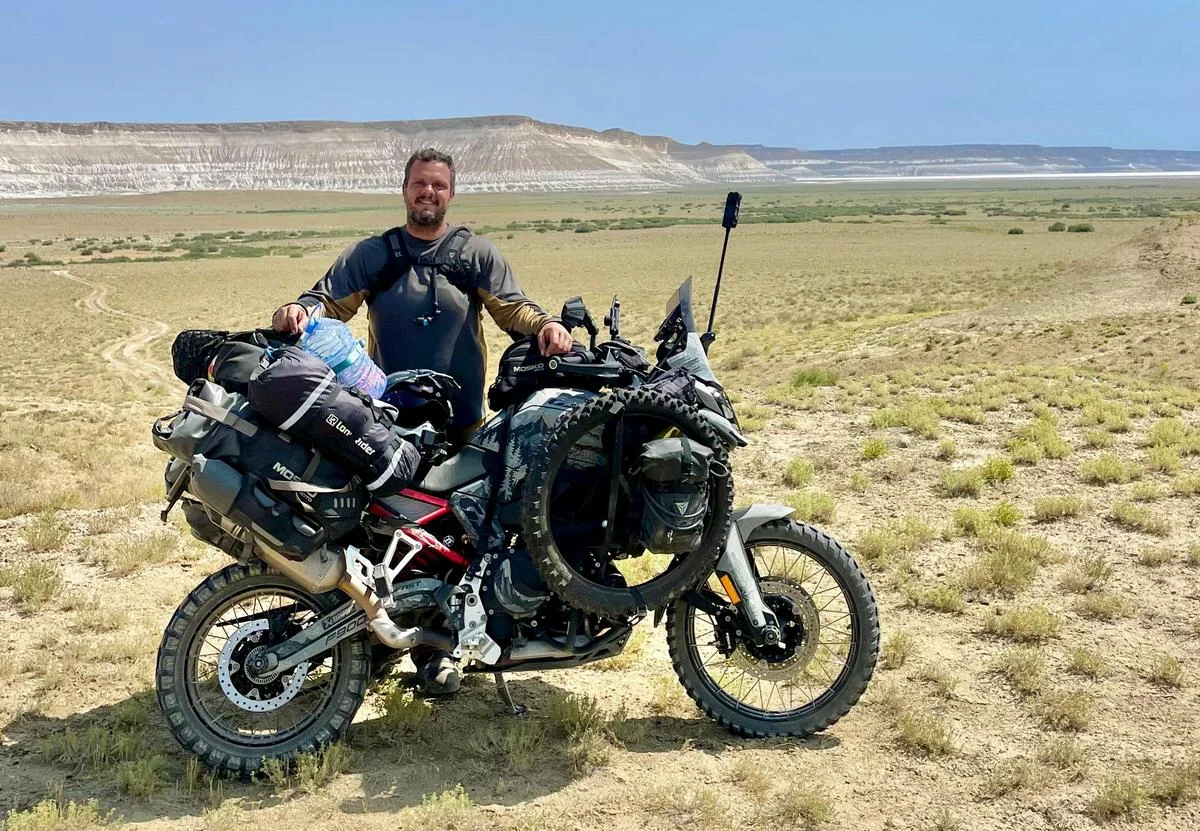 41-летний Даниэль Аседо из города Малага (Испания) проехал тысячи километров на мотоцикле BMW F900GS, чтобы добраться до одного из самых заветных пунктов своего маршрута – Мангистау. С палаткой и мини-плиткой он покинул Европу и оказался в Казахстане, который называет одним из лучших мест своего маршрута.