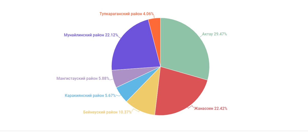 Большая часть населения региона проживала в Актау, на втором месте находился Жанаозен, а на третьем месте по численности населения – Мунайлинский район.