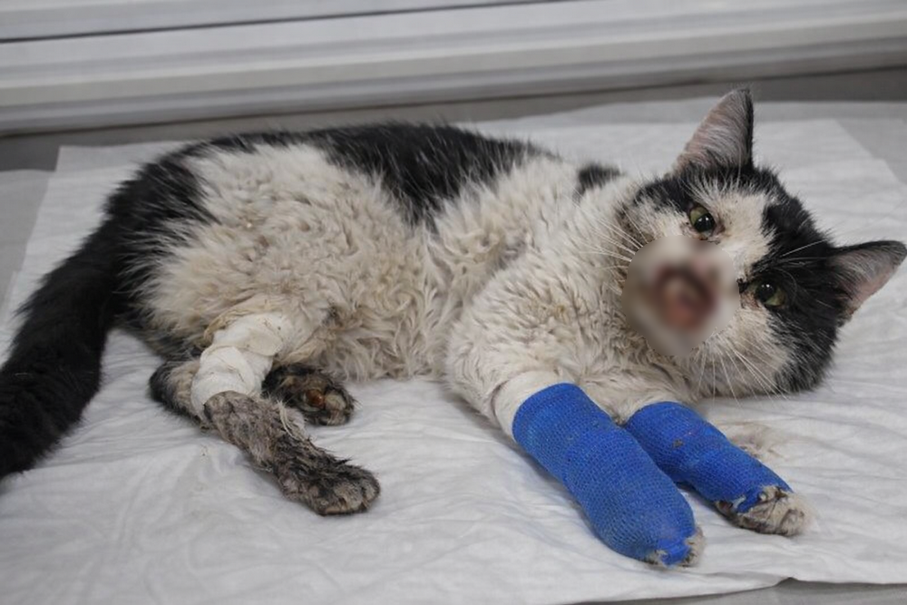 Одна из них произошла около трёх лет назад. Тогда волонтёрам позвонили очевидцы и сообщили, что во дворе дети играли с самодельной петардой. В какой-то момент взрывчатку подложили под кошку, которая лежала на скамейке. Взрыв оказался чудовищным: животному разорвало нижнюю часть челюсти и сильно повредило лапы. Одну из них спасти не удалось — её пришлось ампутировать.