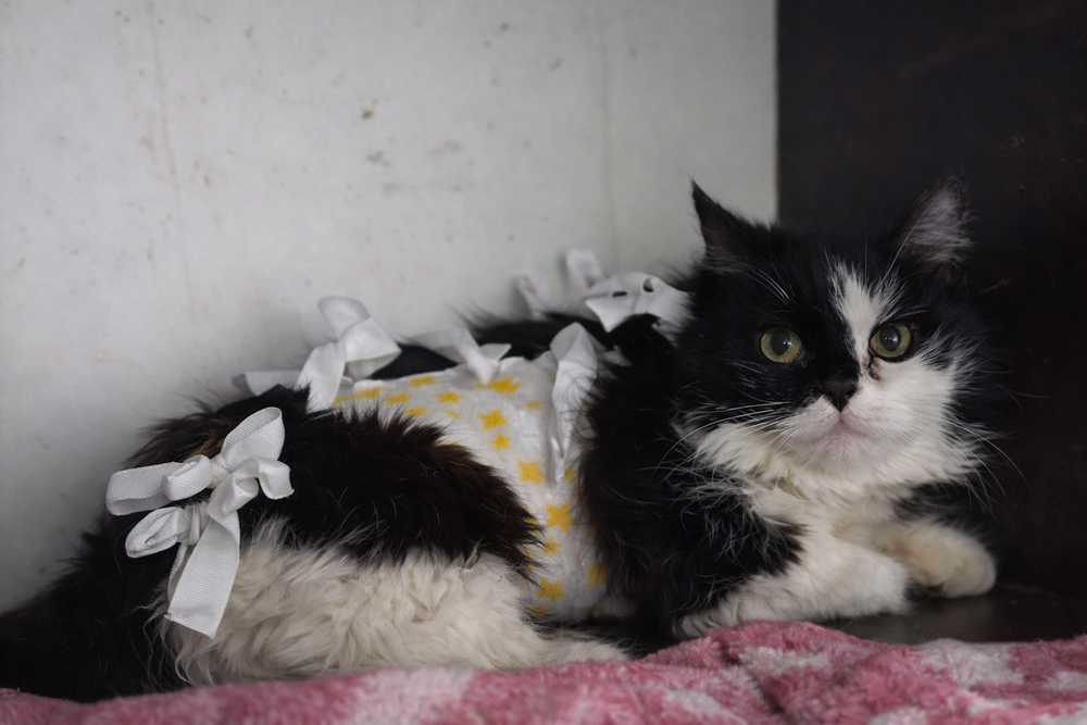 Кошку ожидал долгий и тяжёлый путь восстановления. Динара Исахова ежедневно возила её в ветеринарную клинику, оплачивала операции, лечение и реабилитацию. Большая часть расходов покрывалась из её собственной заработной платы.