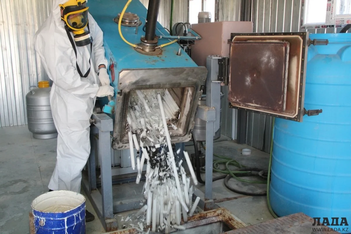Директор ТОО «ECO operating» Азамат Нурлиев рассказал, что от ртути лампы очищают на производственной базе в Форт-Шевченко на термодемеркуризационной установке.