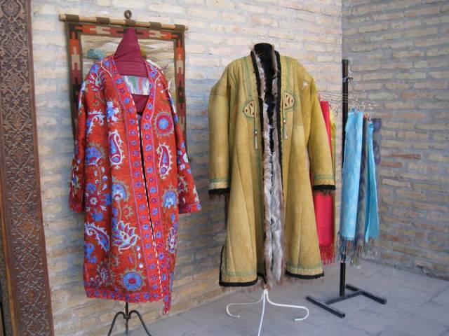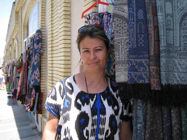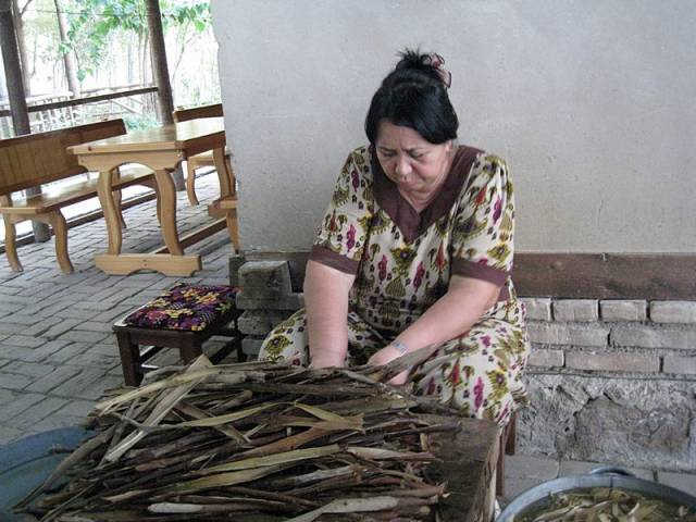 В Самарканде мы с подругой побывали на частной ковровой фабрике, владеет которой семья из Афганистана. В цехах 400 девушек вручную ткут шелковые и шерстяные ковры. В шелковом ковре на одном квадратном сантиметре делают от 100 до 125 узелков. В шерстяном — 40-45 узелков. Нитки для ковров изготавливают тут же. Для их окрашивания используют только натуральные красители — кожуру грецкого ореха, гранатовую корку. Единственный привозной краситель - индиго.