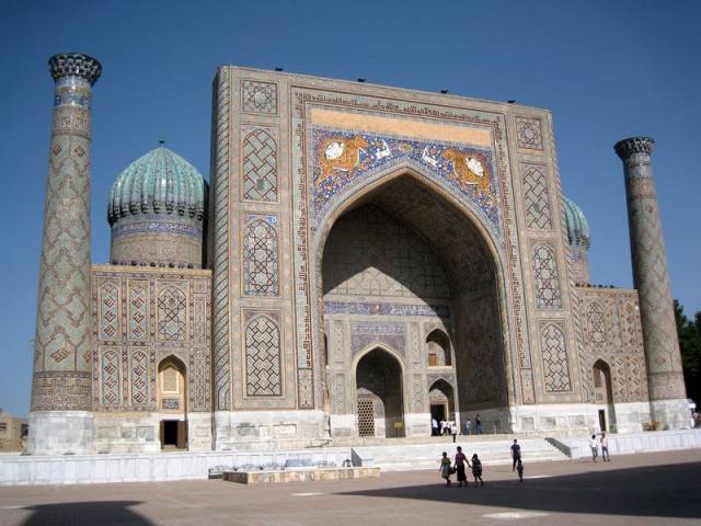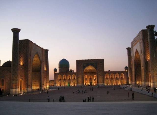 Площадь Регистан - архитектурный ансамбль, построенный в 15-17 веках. Тут располагались три медресе. В 2001 году с другими историческими зданиями Самарканда комплекс включён в Список Всемирного наследия ЮНЕСКО.