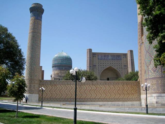 Гур-Эмир - усыпальница Тимуридов. Мавзолей начали строить в 1403 году по повелению Тамерлана. Постройка связана с внезапной кончиной во время военного похода 27-летнего любимого внука Амира Тимура и наследника престола. Через два года, во время похода на Китай, в Отраре умирает от воспаления легких сам Тимур. Похоронили его рядом со внуком в Гур-Эмире. Строительство мавзолея продолжалось, и он стал семейным склепом. Тут покоятся сыновья и внуки Тамерлана, в том числе великий астроном Улугбек.