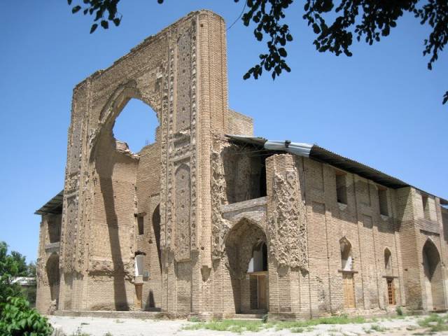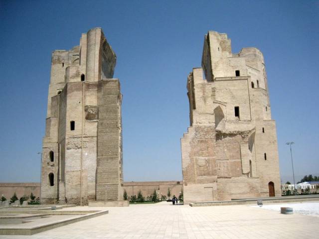 На рубеже 14-15 веков Тимур решил украсить свой родной город грандиозным дворцом Ак-Сарай. Строительством руководил сам Тамерлан. Он созвал самых лучших зодчих со всех уголков своей империи. Сюда же согнали 50 000 рабов.