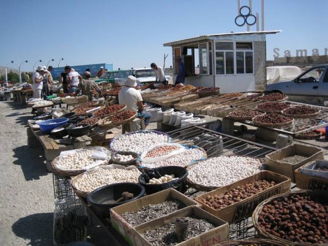 Нам порекомендовали поменять тенге и рубли на сумы до пересечения границы по курсу 1 тенге = 18 сум, 1 рубль = 19 сум. Больше всего ценится доллар. За один «зелёный» давали 6 500 сум. В Узбекистане аналогичный курс только на черном рынке. А официальный в два раза меньше «черного», поэтому в банки никто не обращается. Частных обменных пунктов нет.