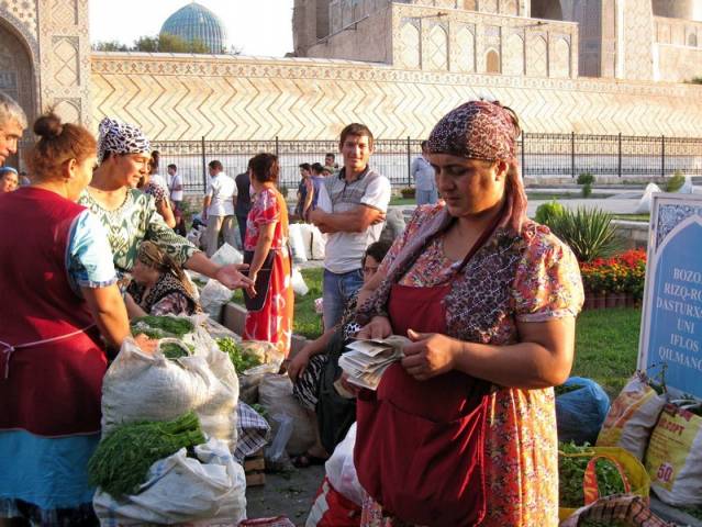 После развала СССР в Самарканде закрылись почти все предприятия, многие остались без работы. Люди среднего и старшего поколения с ностальгией вспоминают былые времена. Сейчас найти работу в родном городе очень сложно, поэтому многие ездят на заработки в страны СНГ. В основном, предпочитают Москву, Питер и города Казахстана. Работают строителями и водителями. Эти мужчины уже 15 лет по полгода, а то и по году водят маршрутки в Санкт-Петербурге. Многие сетуют, что и женщины вынуждены выезжать на заработки. Из-за этого увеличилось число разводов, которых практически не было в советские времена.