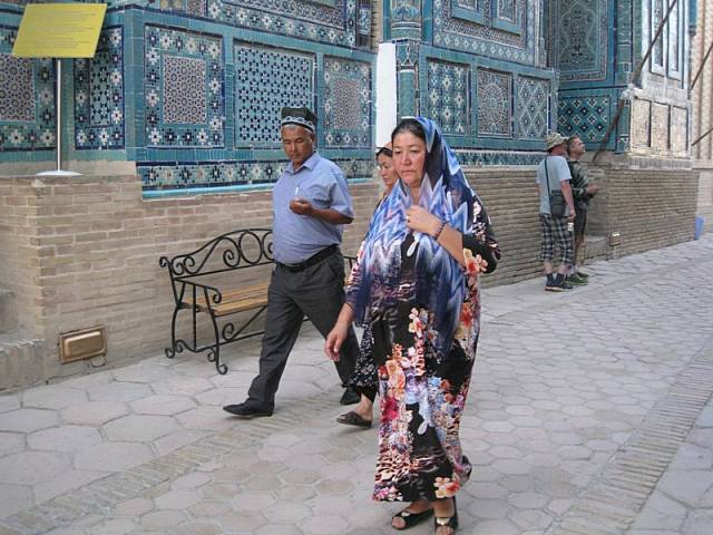 На площади Регистан мы встретили вот такую нарядную девушку. Оказалось, что на днях она вышла замуж и 40 дней после свадьбы молодая жена будет щеголять в пышных одеждах.