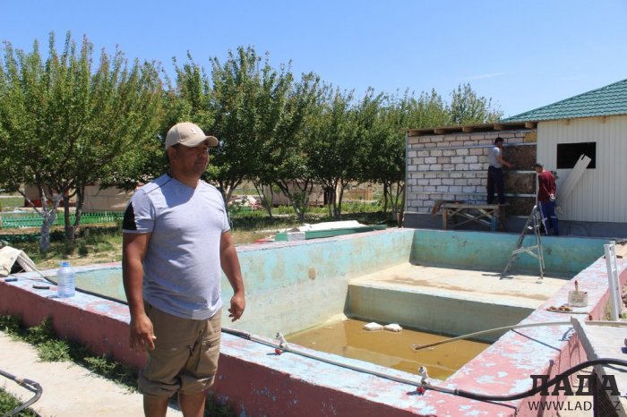 В скором времени закончится реставрация уличного бассейна, который Мукагали Ербозов строил для своей семьи. Его наполнят водой из природного источника. На стадии завершения и строительство небольшого пруда. Он будет работать как резервуар для сбора воды для полива, а также выполнять декоративную функцию.