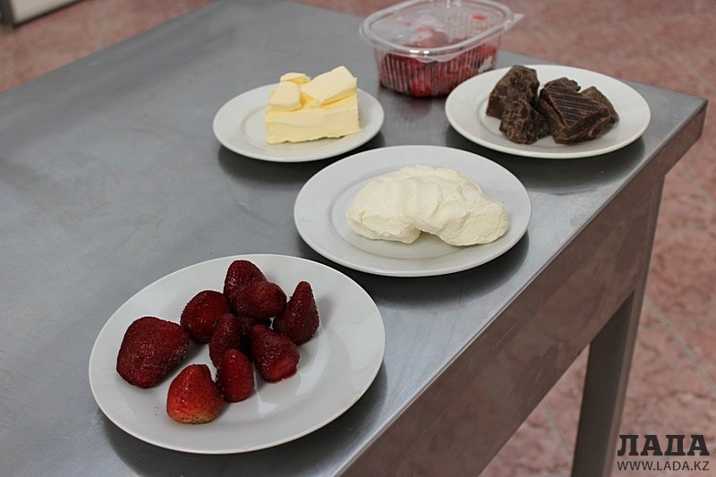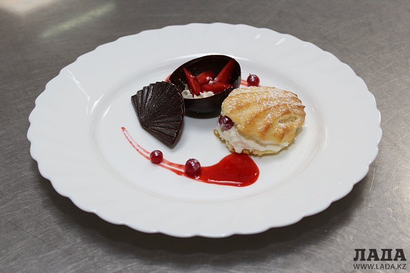 Когда пирожные готовы, разрезаем их и наполняем сливками. Украшаем блюдо по усмотрению и получаем готовый десерт, - рассказал Айбат Жалгасбаев.