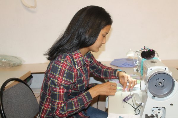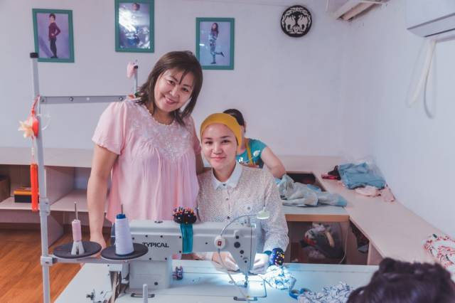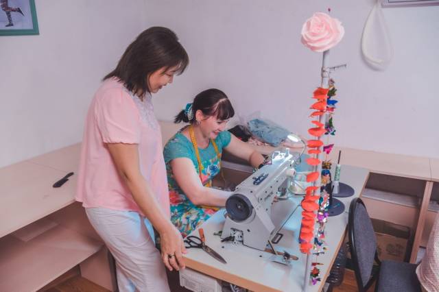Айжан Куттибаева - инвалид II группы. Освоила профессию портнихи и обучает женщин-инвалидов швейному мастерству.