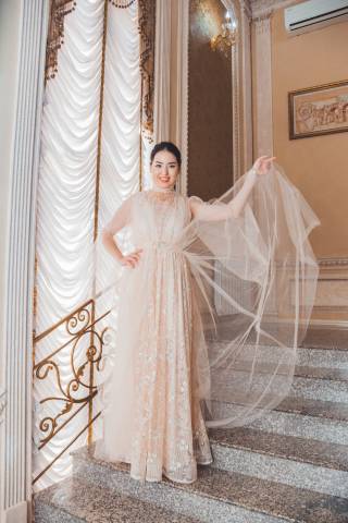 Асия Генджибаева - социальный работник, создает вечернее платье