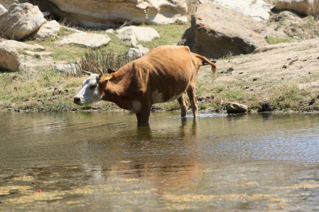 А тут готовая поилка, глубаной 5 метров. Зачем задницы рвать, если скотина сама может напиться из озера...