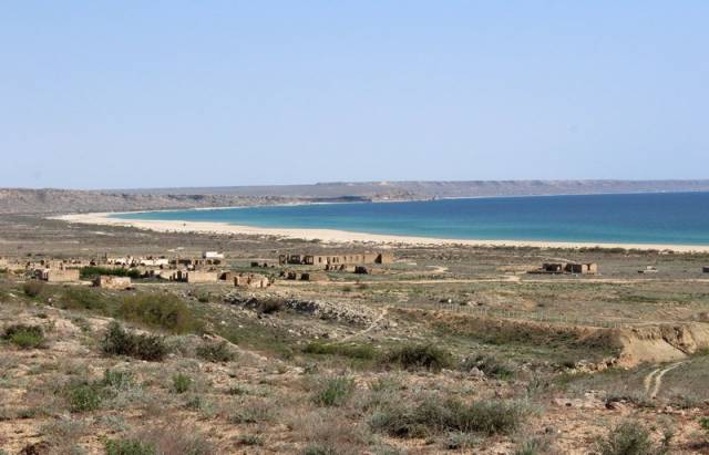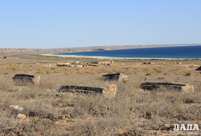По левую сторону от ущелья расположены развалины старых зданий, бывшего рыбацкого поселения. В этом районе некогда проходила рыболовецкая трасса Захара Дубского и располагался один из его ледников. В нем хранилась рыба, доставляемая из Тупкарагана в Астрахань и дальше.