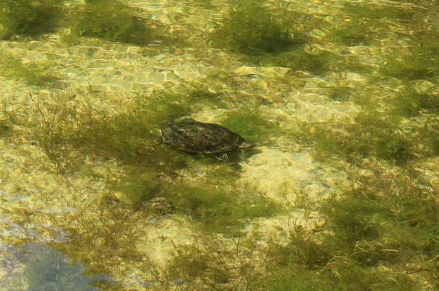 Реликтовые болотные черепахи - самые крупные обитатели озера. Их размер достигает 30 сантиметров. Это черепахи черного цвета с жёлтыми вкраплениями, у них длинный хвостик. А на лапках между коготками имеются перепонки. Черепахи питаются моллюсками, ракообразными, червями, водными и наземными насекомыми и их личинками. В обычных условиях всплывают на поверхность каждые 20 минут и дышат воздухом.