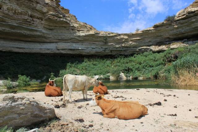 В углублениях каменистого русла гнездятся ласточки, стрижи, филины, пустельги, пустынный ворон.