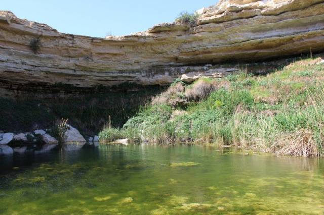 Глубина нижнего каньона до 30 метров. В нём растут тамарикс, ежевика, котовник, подорожник, кардалия. Озеро обрамляют заросли тростника и камыша.
