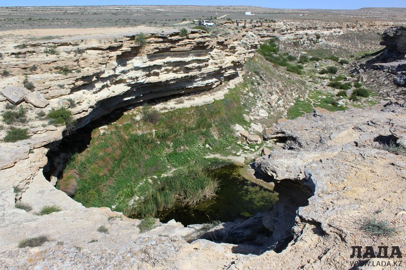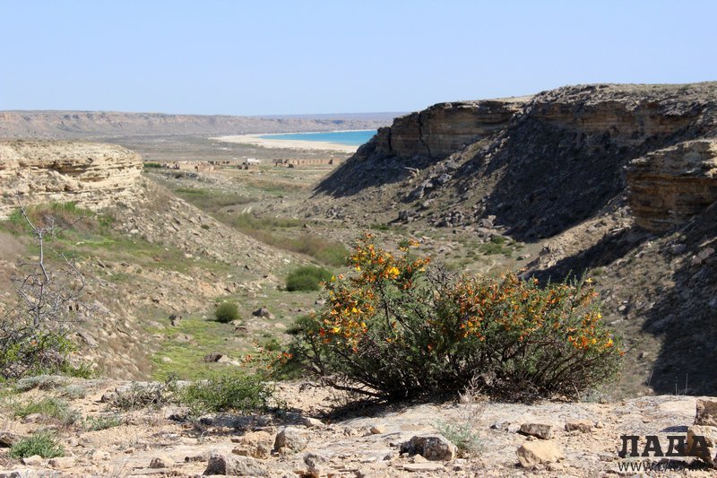 - Саура - прибрежная местность Каспия, где в небольшом каньоне спрятана своеобразная чёрная жемчужина полуострова Мангышлак - небольшое пресноводное озеро Караколь. Глубина озера неизвестна, но она внушительна и позволяет обитать здесь реликтовому виду болотной черепахи.
