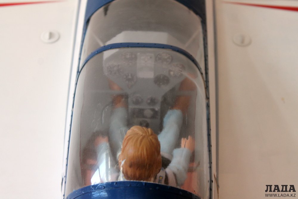 На строительство модели ушло больше года. Как на борту настоящего самолета, в кабине находится пилот-кукла, имеется приборная доска.