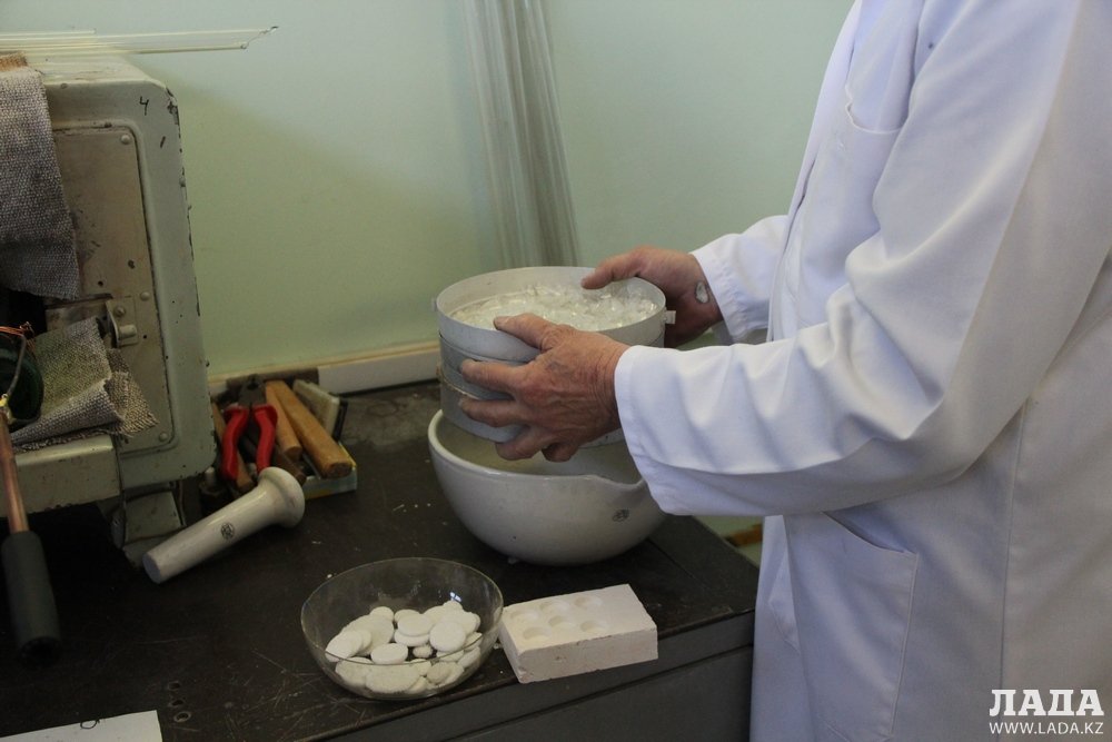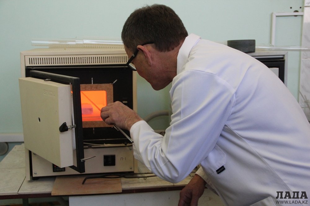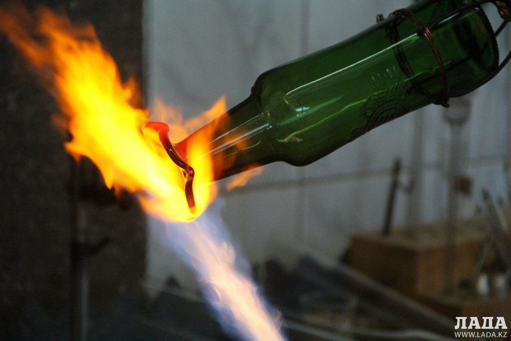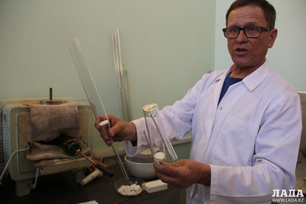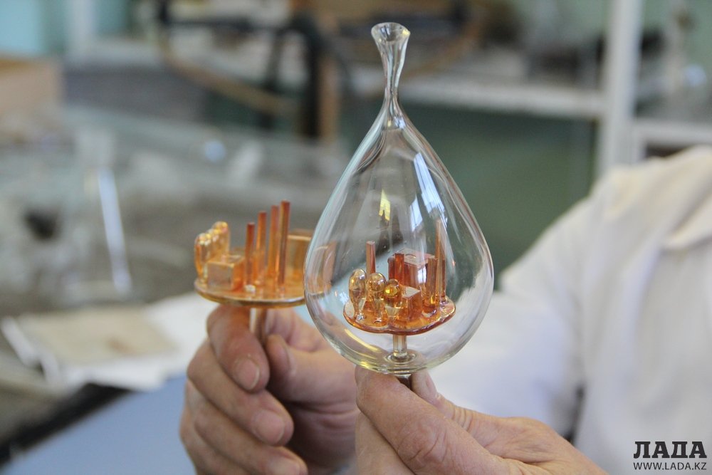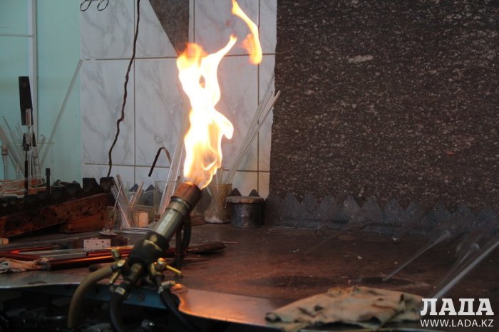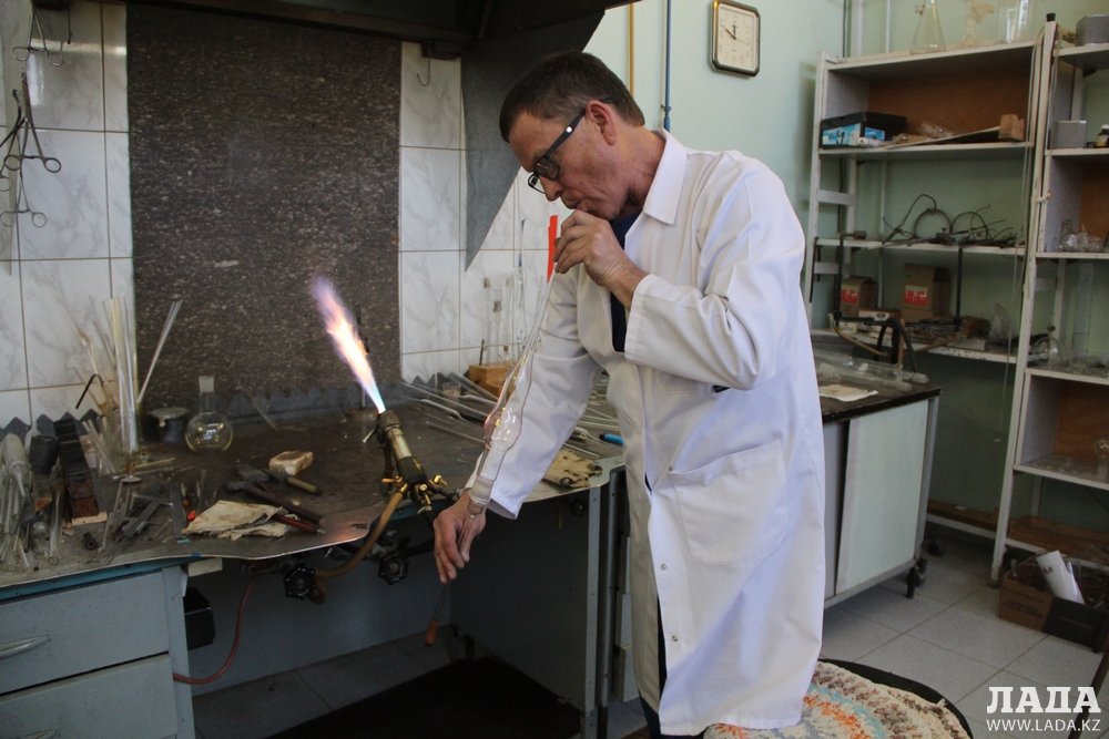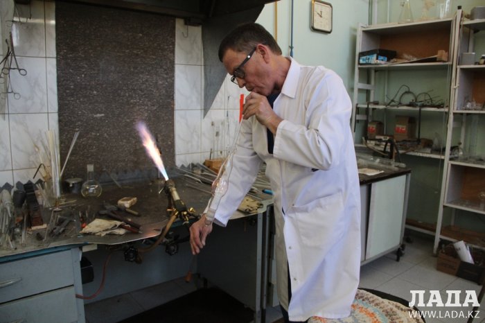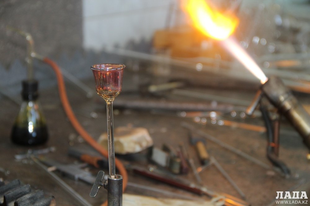 Владимир Иванов 36 лет работает стеклодувом по производству химической и лабораторной посуды и приборов в ТОО «МАЭК-Казатомпром». Небольшая стеклодувная мастерская расположена на территории ЦУВС-2.