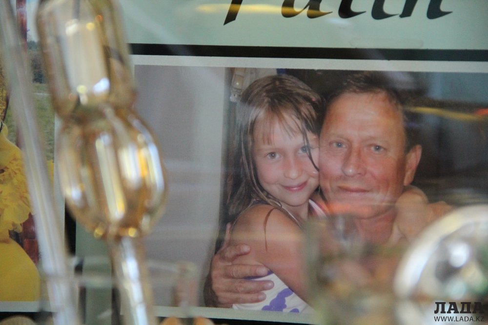 В мастерской у Владимира есть семейный уголок - полка с фотографиями любимой дочери и первого учителя.