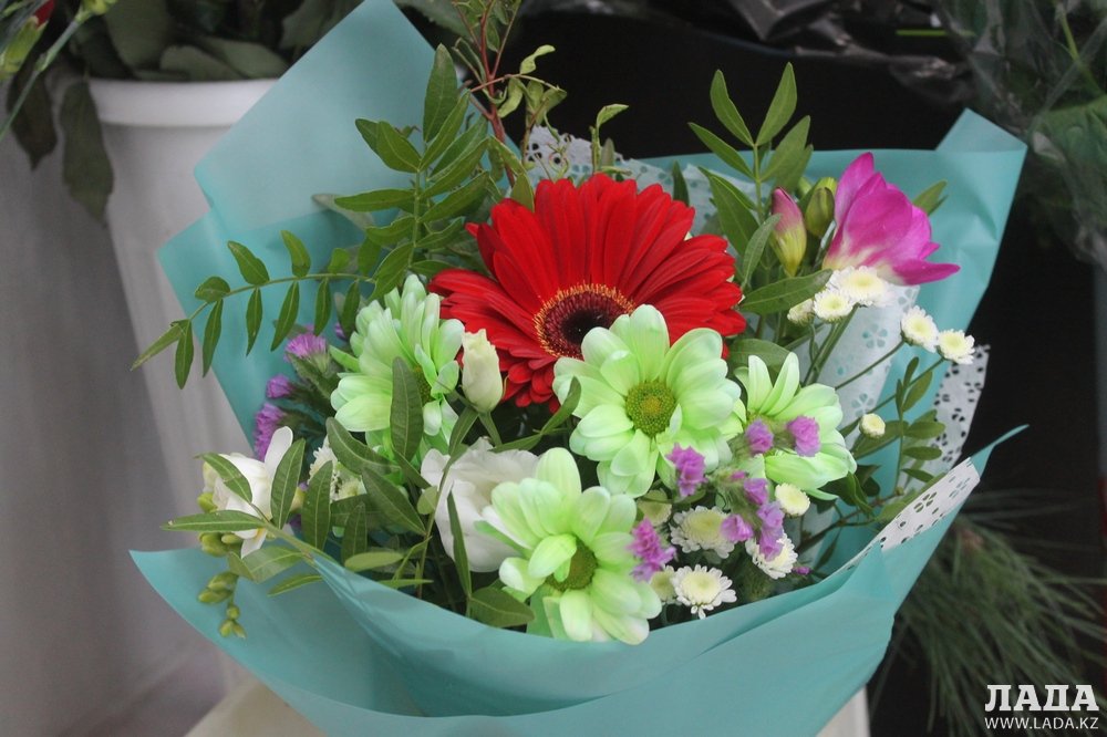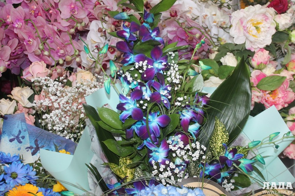 Самый дорогой букет, который выставляют на витрину, стоит до 20 тысяч тенге.