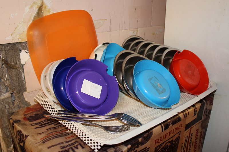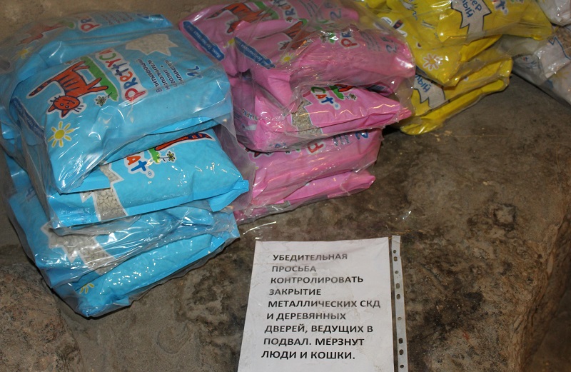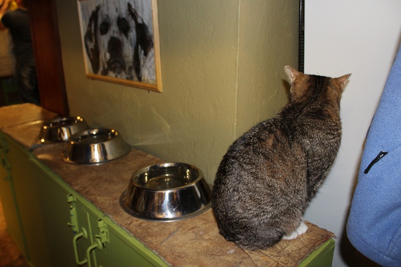 Выделено специальное помещение, где котам готовят еду. Всем полагается своя обеденная миска. За их чистотой и наполнением тоже следят волонтеры.