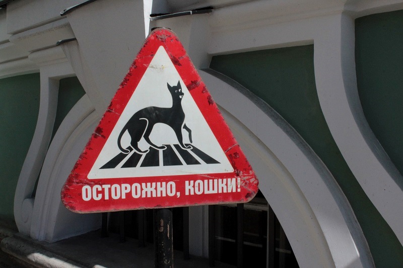 Работники музея, чтобы обезопасить ценных сотрудников от колёс автомобилей, установили на парковке специальные знаки «Осторожно, кошки»! Удачная идея, ставшая достопримечательностью местного масштаба.