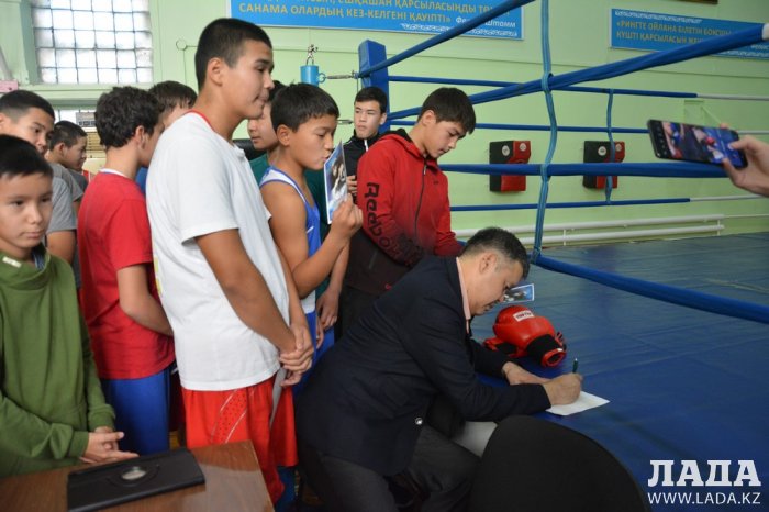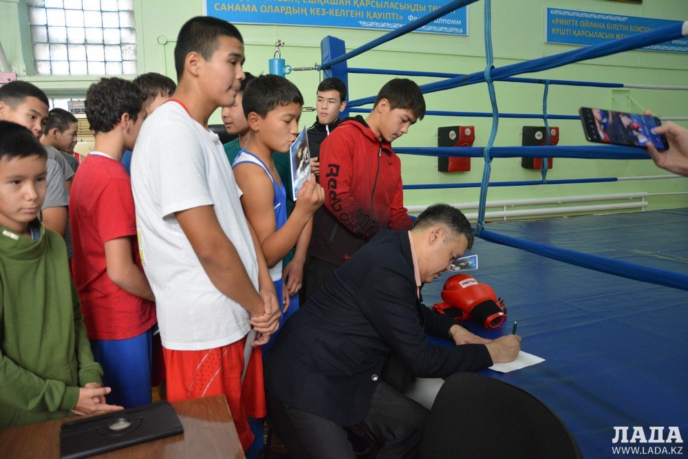 Воспитанники спортивной школы бокса получили бесценный опыт и поблагодарили Асылбека Килимова за визит. В конце мероприятия Асылбек Килимов с удовольствием подписал юным боксёрам открытки.