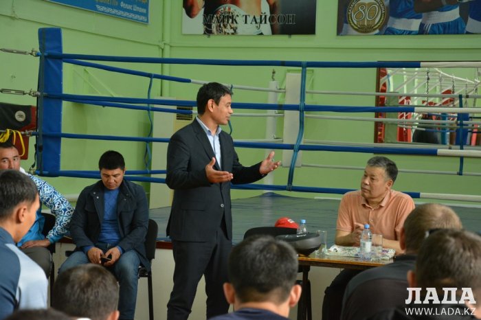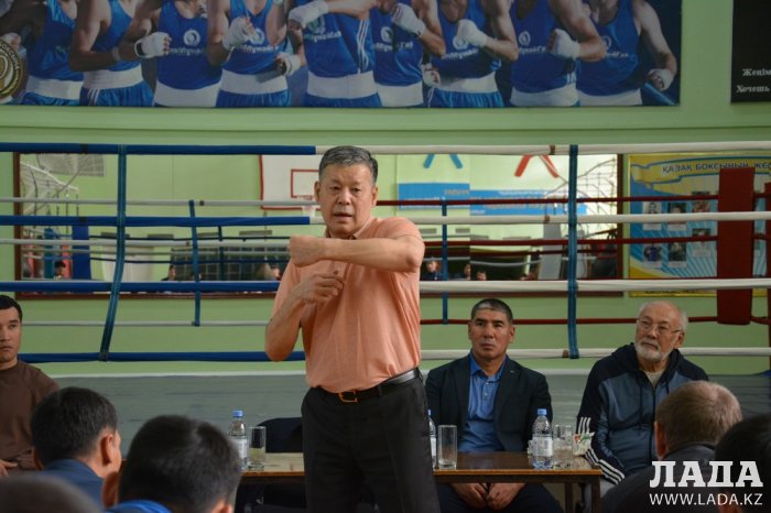 Казахстанский боксёр, мастер спорта международного класса СССР, заслуженный мастер спорта и тренер РК Асылбек Килимов приехал в свой родной город, где пообщался со спортсменами, рассказал им, как сам начинал свой путь, как проходили тренировки под руководством Александра Александровича Драча.