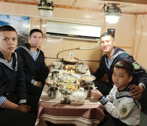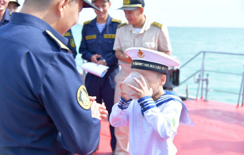 Юный пограничник Улан Толеухан стал неофициальным членом экипажа пограничного корабля «Сардар».