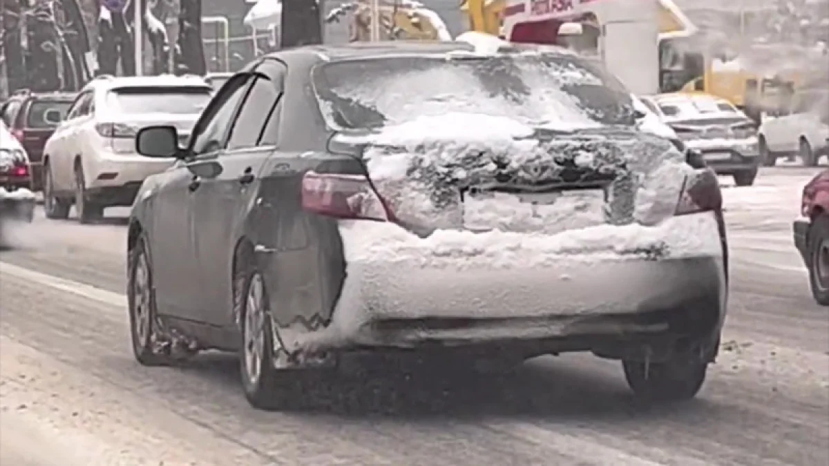 Отметим, что ранее в социальных сетях появилось видео автомобиля, госномер и фары которого покрыты снегом.