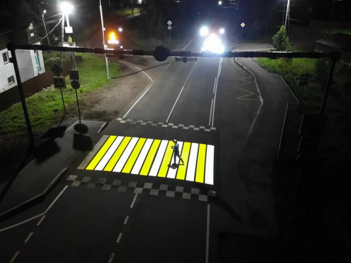 Проекционный дорожный знак хорошо виден даже во время снегопада, дождя, гололеда – во все времена года. В ночное время автомобилисты и пешеходы могут видеть бело-желтую полосу на дороге с расстояния 150 метров. Ранее такие проекционные полосы были установлены на трассах республиканского значения Акмолинской, Западно-Казахстанской и Актюбинской областей.