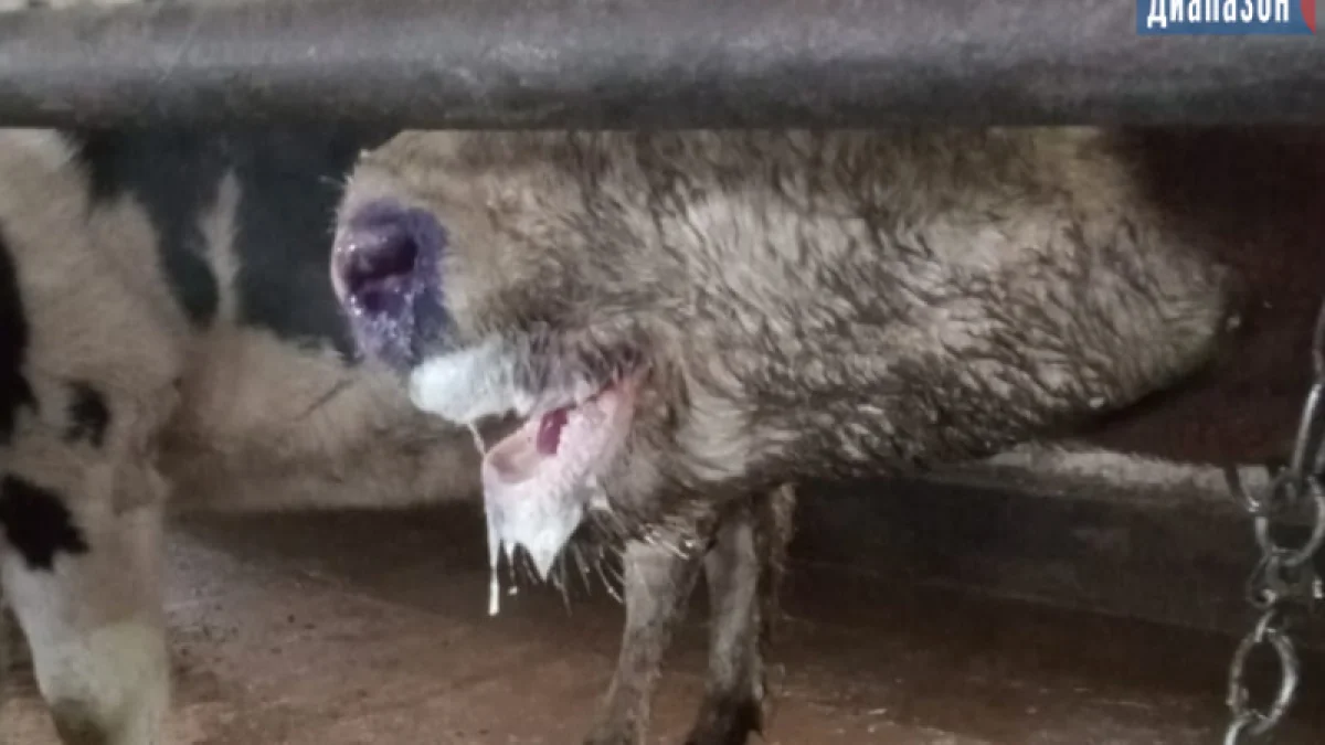 В распоряжении журналистов появилось видео из поселка Теренсай Айтекебийского района. На кадрах у коров, которые стоят в стойле, изо рта течет пена.