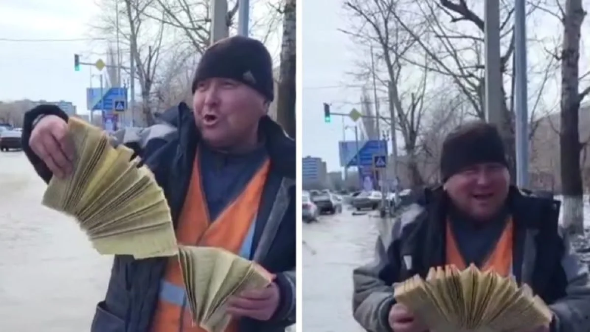В Актобе из-за повышения температуры воздуха и дождей топит улицы. Работники борются с паводками и пытаются не унывать. Пример: мужчина с предметом, похожим на гармошку, посреди затопленной дороги исполняет песню крокодила Гены "Пусть бегут неуклюже" из м/ф "Чебурашка", сообщает Zakon.kz.