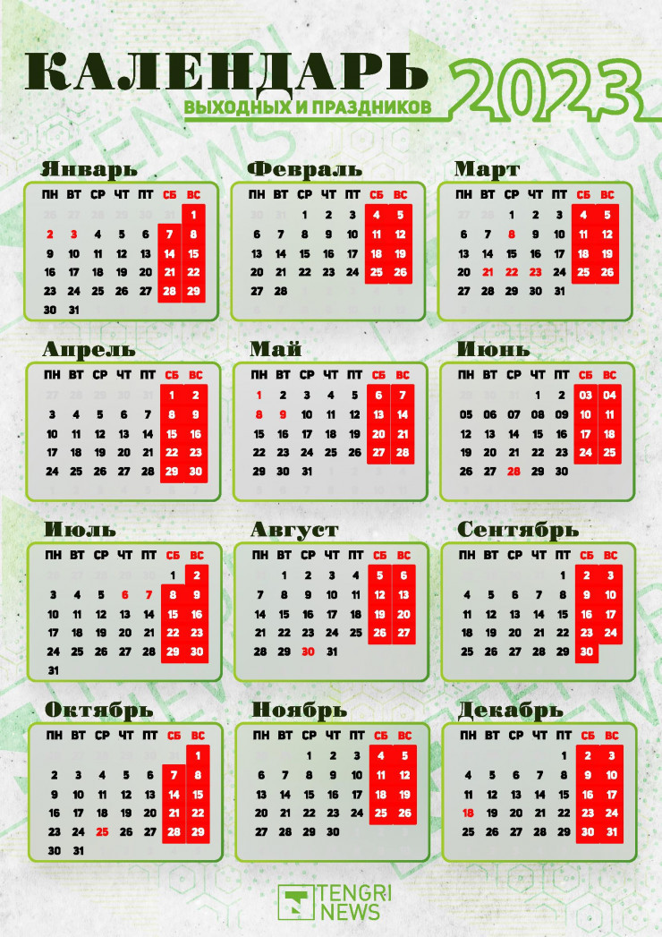 Сообщается, что в целях рационального использования рабочего времени в 2023 году день отдыха с субботы, 1 июля, переносится на пятницу, 7 июля.