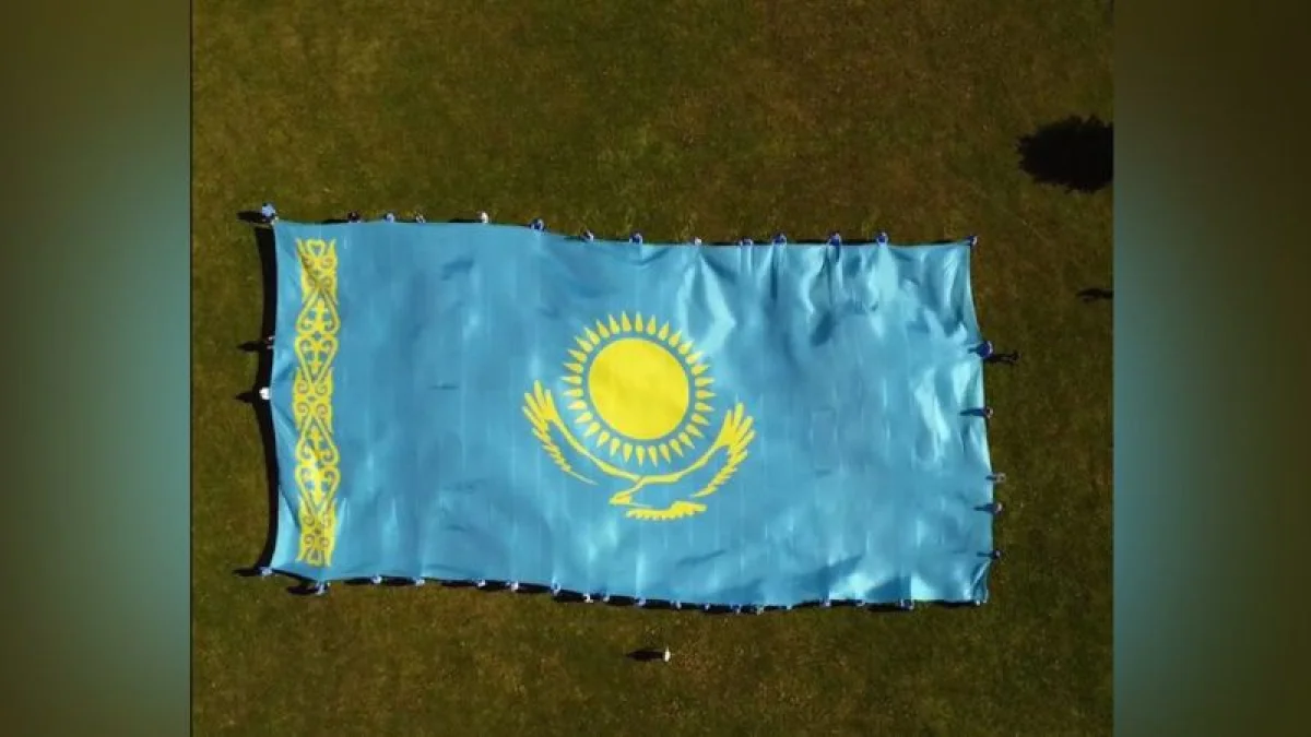 Болельщики сборной Казахстана на Чемпионате мира по хоккею в Латвии развернули флаг нашей страны, занимающий площадь 800 квадратных метров, сообщает Zakon.kz.