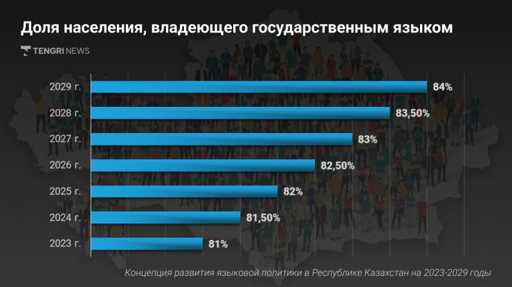 На портале "Открытые НПА" опубликован проект концепции развития языковой политики на 2023–2029 годы в Казахстане. Проект предлагает за ближайшие семь лет увеличить долю казахскоязычного населения в республике до 84 процентов, а долю граждан, владеющих сразу тремя языками, - до 32 процентов. Корреспондент Tengrinews.kz поинтересовалась у экспертов, каково реальное положение дел в языковой сфере.