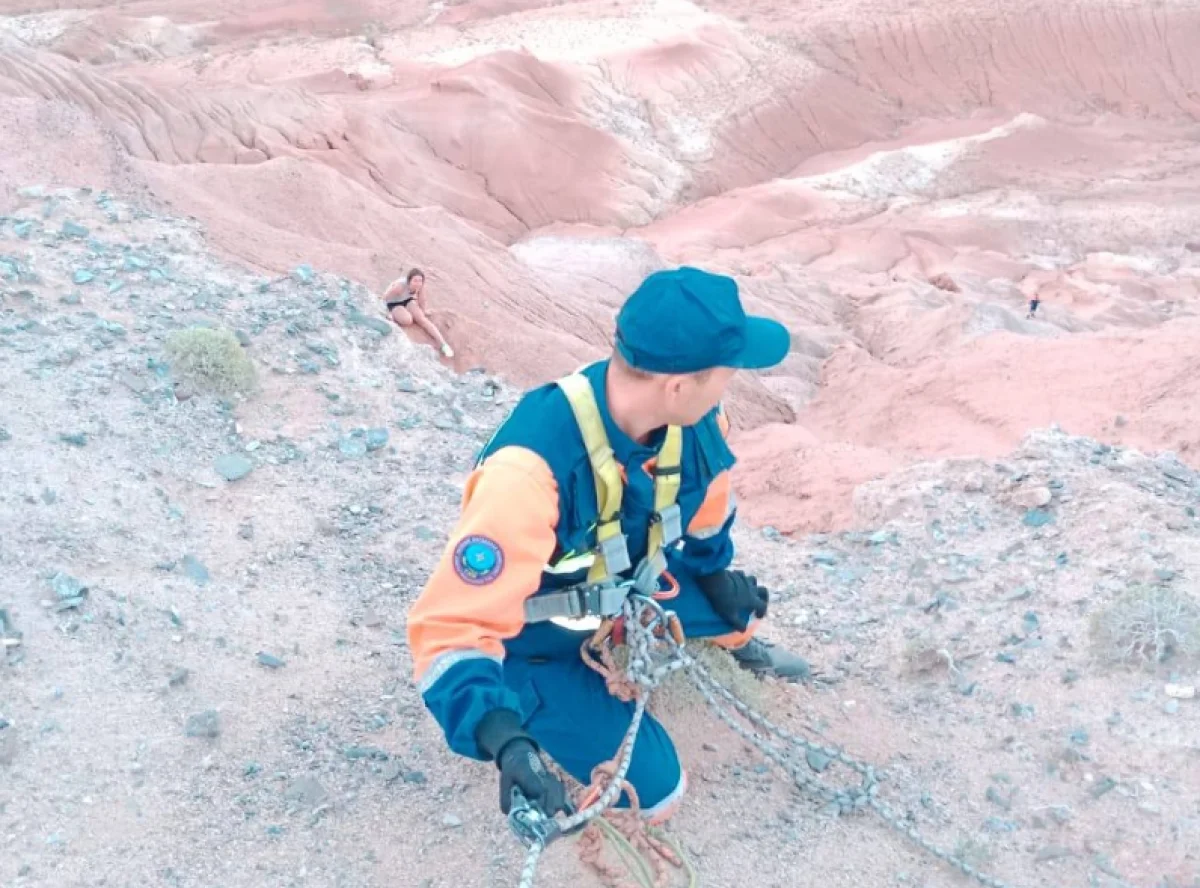 Сотрудники ДЧС Алматинской области в ночь на 20 августа спасали в Чарынском каньоне туристку из России, сообщает пресс-служба МЧС РК. "20 августа с двух часов ночи спасатели оперативно-спасательного отряда ДЧС Алматинской области проводили работы по эвакуации со скалы гражданки России 1990 года рождения. Девушка скатилась с обрыва в Уйгурском районе в Чарынском каньоне (Красные скалы) на расстояние около 500 метров и не могла самостоятельно подняться", – говорится в сообщении.