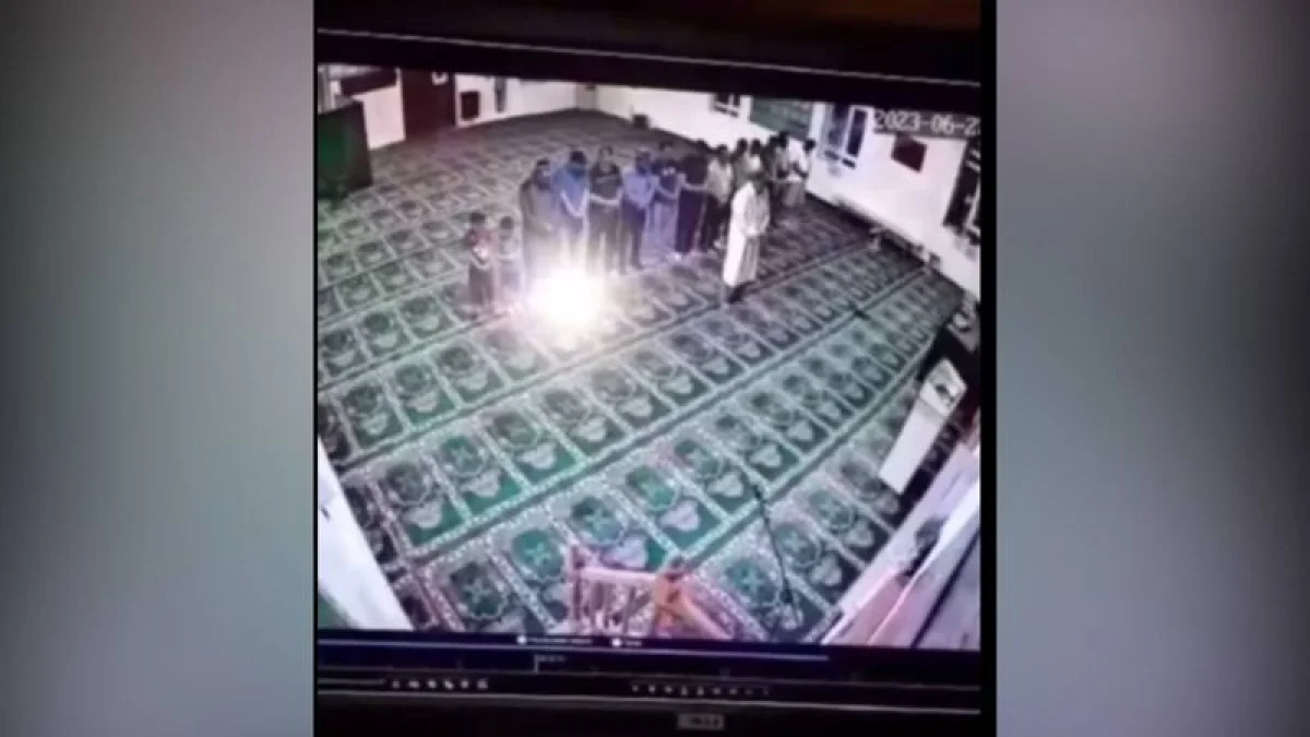 На кадрах видно, как десятки мужчин совершают намаз в мечети села Шелек. В один момент один из детей, стоявших вместе со взрослыми, пробегает перед имамом и тот бьет его так, что ребенок падает.